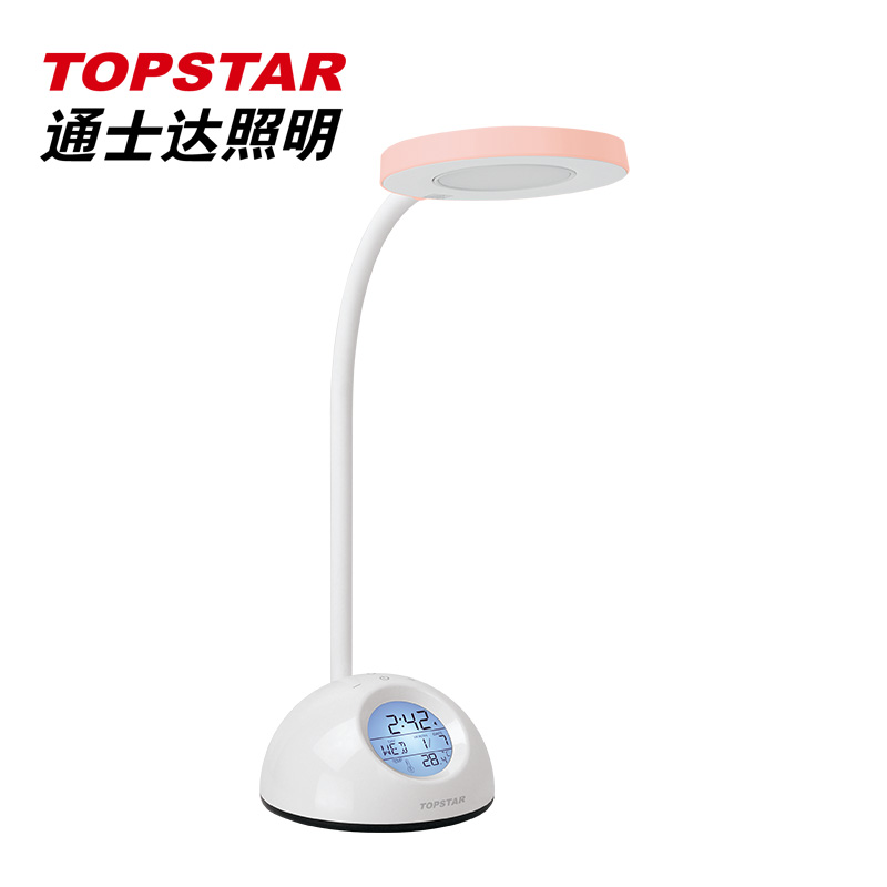 无级调光 四挡调节亮度 五档调色温 多种功能 一台满足 定时提醒、晨起闹钟、实时温度、万年日历,满足多样需求 灯杆随意调节 阅读时调节范围与空间更大